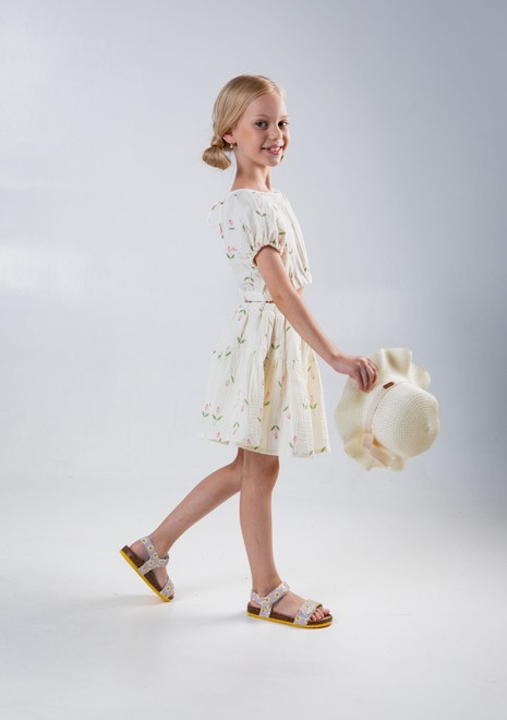 Муслин комплект: топ с юбкой (цветы на бежевом)